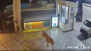 इंटरनेट पर वायरल यह वीडियो 8 फरवरी की है। 8 फरवरी की सुबह गुजरात के जुनागढ़ में एक होटल के मेन गेट को छलांग लगाकर शेर परिसर में घुसता है। शेर को देख इस बीच सिक्योरिटी गार्ड अपने केबिन में ही छिप जात है। इस दौरान वह शेर होटल में आराम से इधर-उधर टहलता है और कुछ देर रुकने के बाद बिना किसी को नुकसान पहुंचाए वापस उसी गेट से छलांग लगाकर चला जाता है। होटल परिसर में रात के समय शेर के चहलकदमी करने का ये वीडियो सीसीटीवी कैमरों में कैद हो गया।