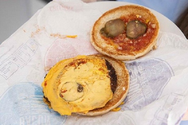 पेशे से वेटरनरी नर्स जॉर्जिया ने जैसे ही डबल चीजबर्गर को खोला, इसके अंदर से मक्खी उड़ती हुई नजर आई. वहीं चंद सेकंड के बाद जॉर्जिया ने नोटिस किया कि बर्गर के अंदर खीरे के नीचे कीड़े चल रहे थे.