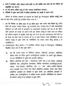 जिला प्रशासन ने शुक्रवार को खत्म हुए कोरोना कर्फ्यू को अब 23 अप्रैल तक के लिए बढ़ा दिया है। वहीं शनिवार और रविवार को वीकेंड कर्फ्यू होने के कारण यह अवधि 26 अप्रैल की सुबह तक रहेगी। कलेक्टर मनीष सिंह ने आज शाम आर्डर जारी करते हुए कहा कि कोरोना कर्फ्यू में पहले की तरह जो छूट और पाबंदी के नियम लागू थे, वही लागू रहेंगे। विदित है कि शनिवार और रविवार को वीकेंड लॉकडाउन रहता है। इसके बाद सोमवार से फिर 23 अप्रैल तक के लिए कोरोना कर्फ्यू को बढ़ा दिया गया है।