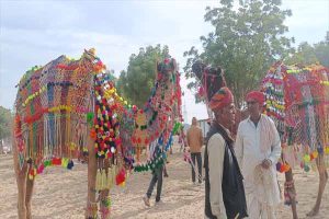 जयपुर/बीकानेर । ऊंट महोत्सव में (In Camel Mahotsav) राजस्थानी लोक धुन पर (On Rajasthani Folk Tune) ऊंटों की लंबी कूद और नृत्य (Long Jump and Dance of Camels) ने सबका मन मोहा (Enthralled Everyone) । बीकानेर में चल रहे ऊंट महोत्सव के दूसरे दिन शनिवार को राष्ट्रीय उष्ट्र अनुसंधान केन्द्र (एनआरसीसी) परिसर में विभिन्न प्रतियोगिताओं का आयोजन किया गया । इस महोत्सव को देखने बड़ी संख्या में देशी-विदेशी सैलानी एनआरसीसी पहुंचे । इस वर्ष पहली बार इस महोत्सव में घोड़ों की दौड़ भी आयोजित की गई, साथ ही रेतीले धोरों में ऊंट और घोड़ों की दौड़ देखने के लिए सैलानियों का हुजूम उमड़ पड़ा। महोत्सव को लेकर विदेशी पर्यटकों में भी काफी उत्साह देखा गया।