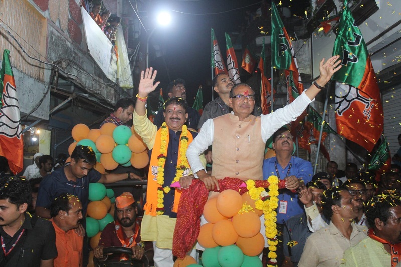 भोपाल (Bhopal)। मध्यप्रदेश (Madhya Pradesh) के मुख्यमंत्री शिवराज सिंह चौहान ((Chief Minister Shivraj Singh Chouhan)) ने बुधवार को भाजपा के चुनावी प्रचार का शंखनाद (sound of election campaign) कर दिया है। उन्होंने देर शाम सबसे पहले भोपाल उत्तर विधानसभा से भाजपा उम्मीदवार आलोक शर्मा (BJP candidate Alok Sharma) के समर्थन में विशाल रोड शो किया। तत्पश्चात सभा को संबोधित करते हुए कांग्रेस पर जमकर बरसे। उन्होंने कहा कि मोदीजी के दिल में एमपी है और भाजपा ही एकमात्र पार्टी है जो विकास करती है।