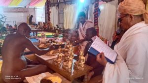 श्री मज्जिनेन्द्र 1008 नेमिनाथ जिनबि ब पंचकल्याणक प्रतिष्ठा एवं गजरथ महोत्सव के पांचवे दिन स पूर्ण पांडाल है स्वामी नमोस्तु नमोस्तु नमोस्तु आत्रो आत्रो आत्रो तिष्ठो तिष्ठो तिष्ठो से गुंजायमान हो गया अवसर था महामुनिराज नेमिनाथ की आहारचर्या का इस पुनीत अवसर पर मुनिराज को प्रथम आहार दान देने का सौभाग्य राजेश , मयूर , जयश्व जैन नारे परिवार को प्राप्त हुआ । उसके पूर्व आज ज्ञान कल्याणक के अवसर पर दिन की शुरुआत अभिषेक शाँतिधारा के साथ हुईए आज के शाँतिधारा के पुण्यार्जन जीतमल मनोज सुपर विकास जैन रहे तत्पश्चात दोपहर कालीन बेला में मुनि भूतबलि सागर महाराज द्वारा समस्त नवीन प्रतिमाओं पर केवल ज्ञान के संस्कार किये गए । भव्य शमवशरण की रचना की गई जिसमे पूज्य गुरूदेव भूतबलि सागर महाराज ससंघ विराजमान हुए समवशरण एक ऐसा स्थान जिसमे भव्य जीव मनुष्य, देव ,नारकी,तिर्यंच एक साथ प्रवेश करते है और अपने प्रश्नों का समाधान पाते है।