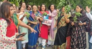 भोपाल। महिलाओं को लेकर आपत्तिजनक टिप्पणी (offensive remarks) करने पर भोपाल में शनिवार को महिला कांग्रेस (Mahila Congress) ने प्रदर्शन किया। महिला कांग्रेस की कार्यकर्ता (Mahila Congress worker) और पदाधिकारी भाजपा के राष्ट्रीय महासचिव कैलाश विजयवर्गीय (Kailash Vijayvargiya) के विधायक बेटे आकाश विजयवर्गीय (Akash Vijayvargiya) के शिवाजी नगर स्थित सरकारी आवास (government House) पर पहुंची। महिला कांग्रेस की नेत्रिओं ने हाथों में बेशरम की टहनियां लेकर प्रदर्शन किया। उन्होंने नारे लगाए कि लाडली बहना और लाडली लक्ष्मी का अपमान नहीं सहेंगे।