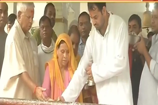• फुलवरिया गांव में राबड़ी देवी के साथ शिव मंदिर में पूजा अर्चना की लालू प्रसाद यादव ने