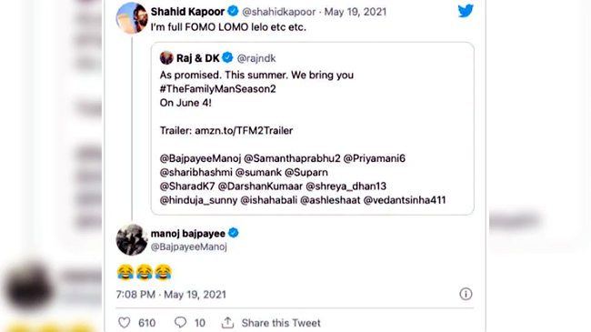 इस कमेंट को पढ़कर सीरीज के लीड किरदार मनोज बाजपेयी भी अपनी हंसी नहीं रोक पाए. उन्होंने शाहिद के इस ट्वीट पर कमेंट सेक्शन में हंसी वाले 3 इमोटिकॉन्स शेयर किए. जहां तक राज एंड डीके की बात है उन्होंने कमेंट में लिखा, ‘हा हा हा …@ बाजपेयी मनोज ने इसे भुनाया !!’