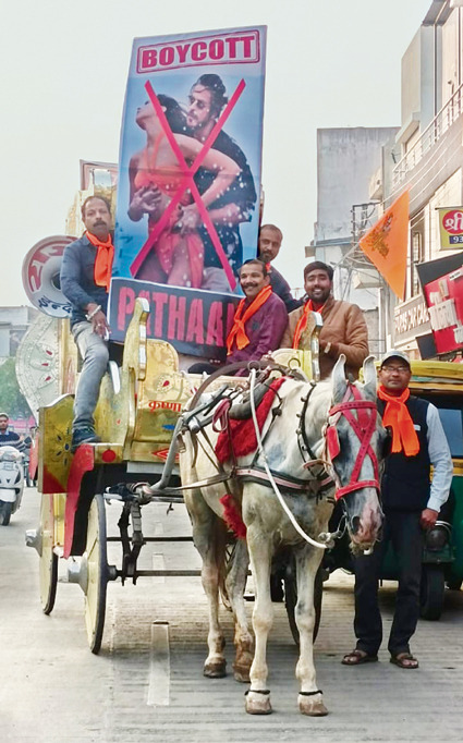 • शाहरुख की पठान का बग्घी पर बैठकर किया विरोध