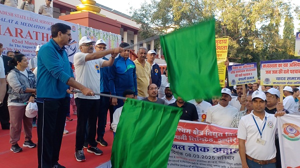 मध्यप्रदेश राज्य विधिक सेवा प्राधिकरण जबलपुर से आए जस्टिस संजीव सचदेवा के साथ प्रशासनिक जस्टिस विवेक रूसिया ने हरी झंडी दिखाकर इसका शुभारंभ किया। आज सुबह करीब 7.30 बजे यह मैराथन शुरू हुई जो लैंटर्न चौराहा, जंजीर वाला, इंडस्ट्री हाउस, गीता भवन, मधुमिलन, रीगल चौराहा होते हुए वापस हाइकोर्ट परिसर में सम्पन्न हुई। मैराथन में जस्टिस सुबोध अभ्यंकर, जस्टिस प्रेम नारायणसिंह, जस्टिस बिनोद कुमार द्विवेदी के साथ जिला न्यायालय के न्यायाधीशगण, प्रशासनिक और पुलिस अधिकारी, वकील, सामुदायिक मध्यस्थगण, पैरा लीगल वालेंटियर, फोर्स अकेडमी के स्टूडेंट्स के साथ लॉ कॉलेज के विद्यार्थी भी शामिल हुए। इनके अलावा मैराथन में महापौर पुष्यमित्र भार्गव, पुलिस कमिश्नर संतोष कुमार सिंह, एडिशनल पुलिस कमिश्नर अमित कुमार सिंह, नगर निगम आयुक्त शिवम वर्मा, अपर आयुक्त अभिलाष मिश्रा, अपर कलेक्टर राजेंद्र सिंह रघुवंशी और रोशन राय सहित अन्य अधिकारी भी उपस्थित थे। अंत में पुरस्कार वितरण भी हुआ।