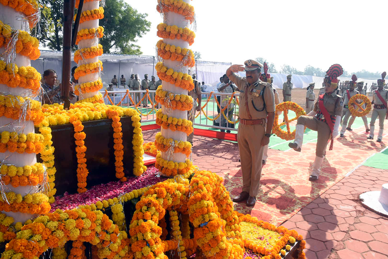 स्मारक पर शहीद हुए पुलिस कर्मियों को याद करते हुए अधिकारियों ने पुष्प गुच्छ चढ़ाकर श्रद्धांजलि अर्पित की। इसके पहले पुलिस जवानों द्वारा परेड के साथ शहीद हुए पुलिसकर्मियों को सलामी भी दी गई। इस अवसर पर शहीद पुलिस कर्मियों के परिजन भी मौजूद थे। आईजी श्री सिंह ने अपने उद्बोधन में शहीद हुए पुलिस कर्मियों के नाम का वाचन करते हुए तथा सेवा के दौरान उनकी शहादत को याद करते हुए शाब्दिक श्रद्धांजलि दी।