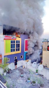 इंदौर। पाटनीपुरा क्षेत्र (Patnipura area) स्थित कन्हैयालाल (Kanhaiyalal) की चाल में आज सुबह बड़ा अग्निकांड हो गया। यहां एक चार मंजिला भवन में बने इलेक्ट्रॉनिक शोरूम, गोडाउन (Electronic Showroom,Godown) और अन्य दुकानों को आग ने चपेट में ले लिया। आग बुझाने के दौरान एक गैस टंकी भी फटी, जिसके धमाके से उक्त भवन की दीवार भी ढह गई, वहीं दो फायरकर्मी भी झुलस गए।