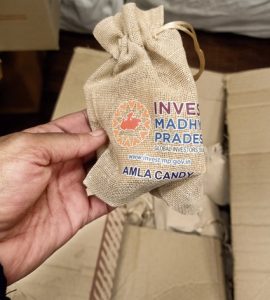 विदेशों से अपने देश लौट रहे प्रवासियों के लिए जहां विभिन्न तरह के सांस्कृतिक आयोजन की तैयारी की जा रही है, जिससे अपने देश की संस्कृति की छवि उनके दिमाग में छाप छोड़े, वहीं मध्यप्रदेश के विभिन्न जिलों में तैयार किए जा रहे उत्पाद को प्रमुखता दी जा रही है, जिसमें भोपाल में बने जूट बैग, देवास में बने बेम्बू बाक्स और ईको फ्रेंडली तरीके से बनाई गई बेम्बू शिल्क का ट्रोल, बाग प्रिंट किया हुआ ट्रोल, कोदोकुटकी से बनी कुकीज, पन्ना की आंवला केंडी, मध्यप्रदेश का गुड़ और गौंड आर्ट से तैयार किया गया मुमेन्टो, वहीं ट्रायवल आर्ट से तैयार की गई छोटी थैलियां दी जाएंगी। ब्रिलियंट कन्वेंशन सेंटर में ये सभी सामान, भोपाल से तैयार होकर आए जूट बैग में रखा जा रहा है।