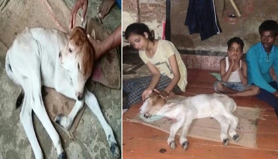 कुदरत का करिश्मा : दो मुंह, दो कान और चार आंखों वाले बछड़े ने लिया जन्म, देखने उमड़ी भारी भीड़