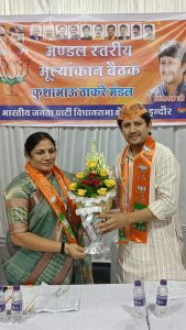 विधायक आकाश विजयवर्गीय ने गुजरात के अहमदाबाद से पधारी कंचनबेन रादडिया का किया आत्मीय स्वागत।