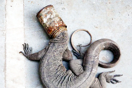 आगरा। ताजनगरी में मॉनिटर लिजर्ड (Monitor lizard) का सिर टिन के डिब्बे में फंस (head stuck in tin can) गया. आसपास के लोगों ने एसओएस (Sos) को इसकी सूचना दी. इसके बाद वहां पहुंची टीम ने मॉनिटर लिजर्ड का रेस्क्यू (rescue operation) किया है. वाइल्डलाइफ एसओएस रेस्क्यू हेल्पलाइन को वन्यजीवों के संकट में होने के दो विभिन्न कॉल मिले थे. इसके बाद रेस्क्यू (rescue operation) की उनकी जान बचाई गई.