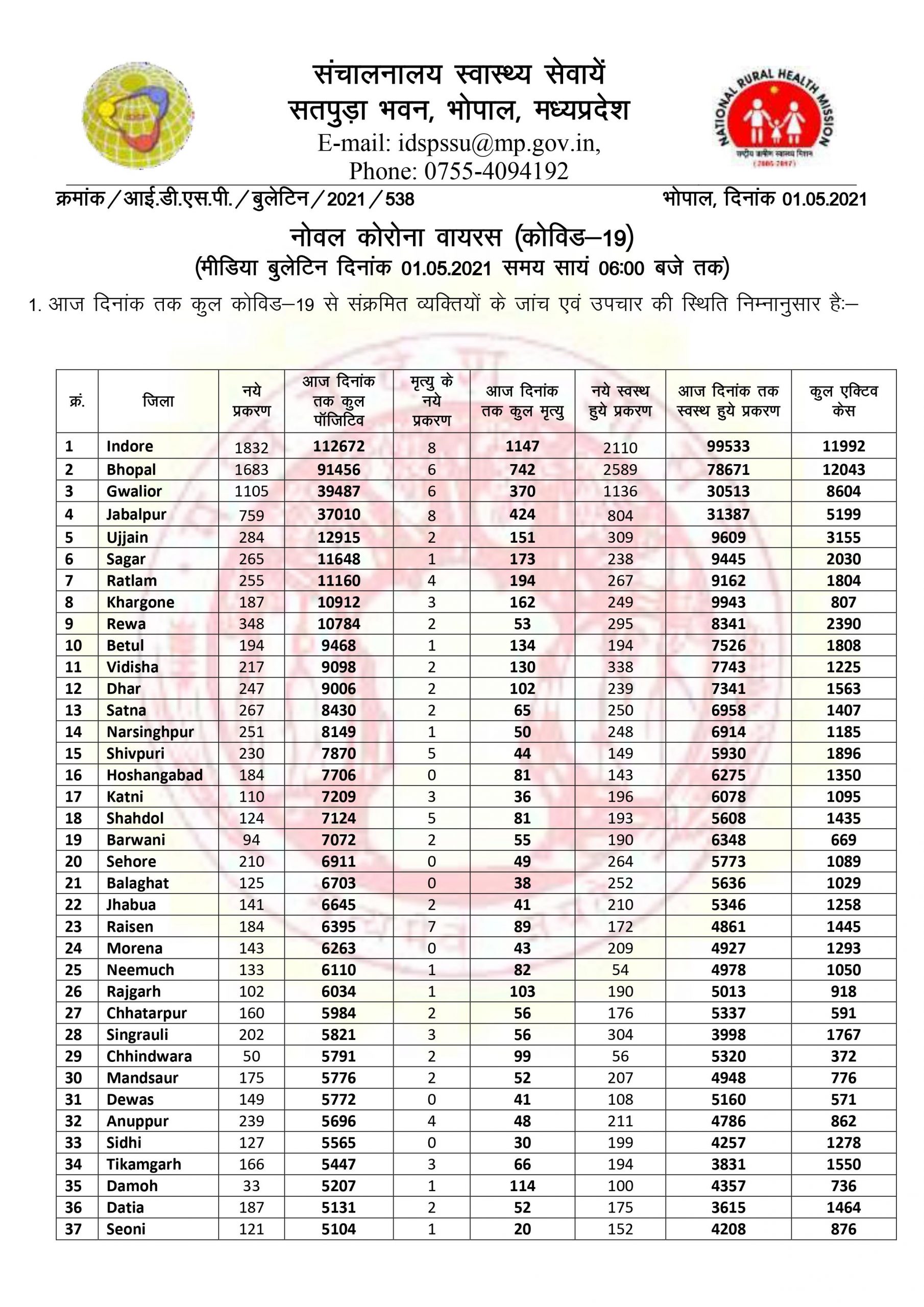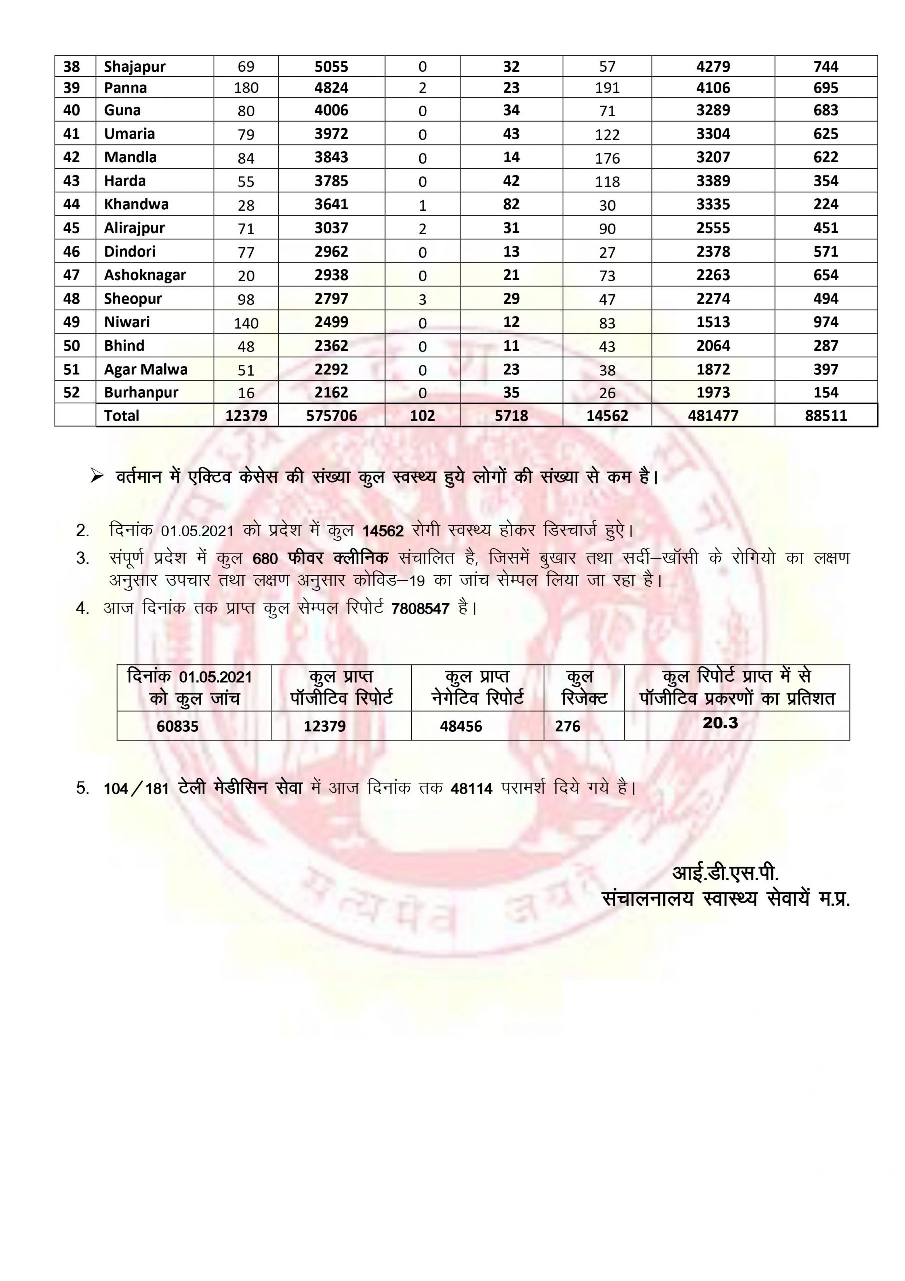 मप्र में कोरोना के 12 हजार से अधिक नए मामले, 102 लोगों की मौत