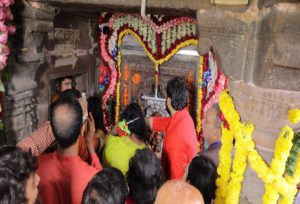 उज्जैन। नागपंचमी (Nagpanchami) पर उज्जैन (Ujjain) में महाकाल मंदिर (Mahakal Temple) के शिखर पर स्थित नागचंद्रेश्वर मंदिर (Nagchandreshwar Temple) के पट गुरुवार रात 12 बजे खोल दिए गए। सबसे पहले श्री पंचायती महानिर्वाणी अखाड़े के महंत विनीत गिरि महाराज और श्री महाकालेश्वर मंदिर प्रबंध समिति के अध्यक्ष व कलेक्टर नीरज कुमार सिंह ने त्रिकाल पूजा की। करीब एक घंटे चली त्रिकाल पूजा और भोग लगाने के बाद आम लोगों को दर्शन के लिए मंदिर में प्रवेश दिया गया।
