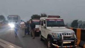 ये सभी पुलिसकर्मी बोलेरो वाहन से एक अपहृत बच्ची की तलाश में हरियाणा के बहादुरगढ़ जा रहे थे।