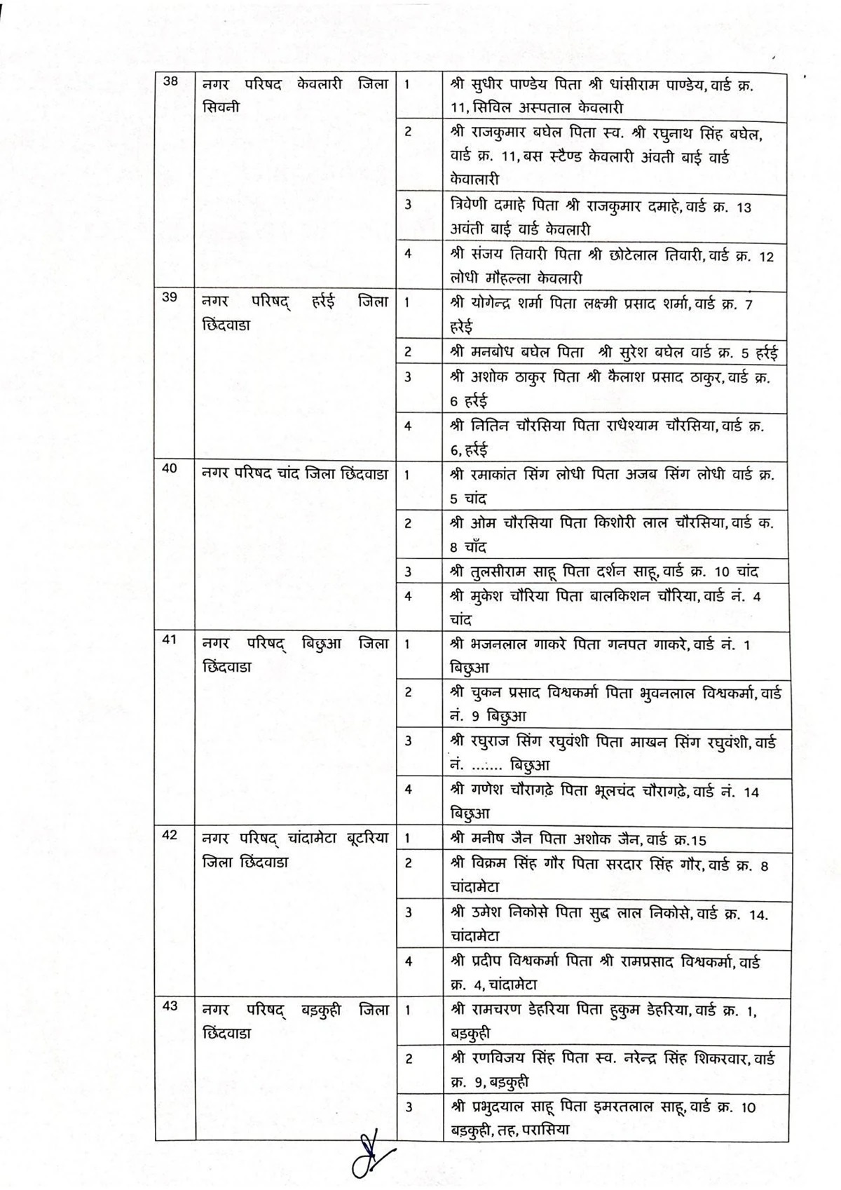 भोपाल। मध्य प्रदेश (Madhya Pradesh) में लंबे इंतजार और गहन मंथन के बाद प्रदेश सरकार ने प्रदेश की नगर परिषदों (Municipal councils) में एल्डरमैन (मनोनीत पार्षद) नियुक्त करने की प्रक्रिया शुरू कर दी है. रविवार को नगरीय निकायों में एल्डरमैन के नामों की घोषणा (Declaration.) की गई. पहली सूची में 25 जिलों की 123 नगर परिषदों के लिए अधिकतम 4-4 एल्डरमैन नियुक्त किए गए हैं.