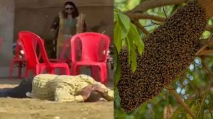 गुना। मध्य प्रदेश के गुना में मधुमक्खियों के आतंक ने शादी समारोह में हड़कंप मचा दिया। इस हमले में न केवल कई मेहमान घायल हुए बल्कि 2 मेहमानों को तो आईसीयू में एडमिट करना पड़ा। जानकारी के मुताबिक, होटल की छत पर मधुमक्खियों का छत्ता लगा था, जिसने वहां मौजूद लोगों पर हमला किया।