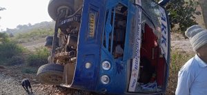 शहडोल। मध्य प्रदेश (Madhya Pradesh) के शहडोल (Shahdol) से ब्यौहारी की तरफ जा रही यात्रियों से भरी एक बस (bus full of passengers) अनियंत्रित होकर पलट गई। इस घटना में एक दर्जन यात्री घायल होने की जानकारी सामने आई है। वहीं पांच लोगों को गंभीर चोट भी लगी है। सभी घायलों को अस्पताल में भर्ती कराया गया है। मामले की जानकारी मिलते ही पुलिस प्रशासन मौके पर पहुंचा और राहत बचाव कार्य प्रारंभ किया।