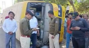 दरअसल, ग्वालियर के मांढरे की माता इलाके में स्कूल के बच्चों को लेकर लौट रही बस संतुलन बिगाड़ने के कारण पलट गई। मांढरे की माता के किनारे पर मिट्टी का ढेर और सामने से आ रहे टैंकर को बचाने के चक्कर में ये हादसा हुआ। इस हादसे में दो बच्चे घायल हो गए और नर्सिंग की परीक्षा देने लिए जा रही एक राहगीर महिला बस की चपेट में आ गई। हादसे की सूचना मिलते ही पुलिस प्रशासन के अधिकारियों ने मौके पर पहुंचकर घायलों को हॉस्पिटल पहुंचाया।