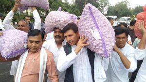 MP: विधासनभा में लहसुन के कट्टे लेकर पहुंचे कांग्रेस विधायक, गेट पर फेंककर किया प्रदर्शन, देखें वीडियो