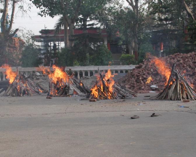 कोविड-19 (Covid19) की दूसरी लहर के घातक प्रकोप के बीच यहां श्मशानों में लगातार चिताएं जल रही हैं और इनके कर्मचारी दिन में करीब 15 घंटे तक काम करते हुए शवों के अंतिम संस्कार (Funeral) में शोकसंतप्त परिजनों की मदद कर रहे हैं।