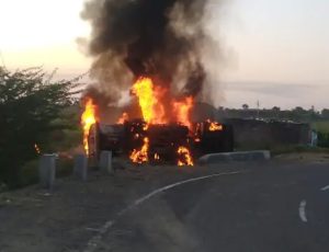 खरगोन। मध्यप्रदेश के खरगोन (Khargone of Madhya Pradesh) में बुधवार सुबह भारत पेट्रोलियम का डीजल से भरा एक टैंकर (Bharat Petroleum Diesel Tanker) पलट गया। पलटे हुए टैंकर से डीजल लेने के लिए बर्तन लेकर पहुंच गए थे। इसी दौरान टैंकर में ब्लास्ट (blast in tanker) हो गया और उसके चीथड़े उड़ गए। धमाका इतना जबरदस्त था कि डीजल भर रही युवती कंकाल (girl skeleton) हो गई। दो लोगों की मौत हो गई। सात बच्चों समेत 22 के घायल होने की सूचना है।
