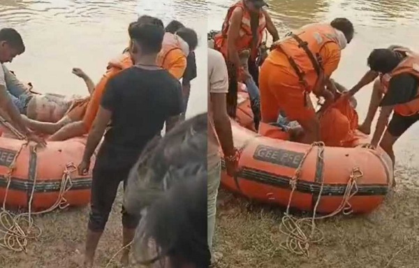 घटना बुधवार की है। यहां एक शख्स पानी में डूब रहा था। इस दौरान उसको बचाने में और लोग भी पानी फंस गए थे। बाद में जवानों को रेस्क्यू के लिए आना पड़ा। रेस्क्यू के दौरान जवानों की नाव पलट गई। नाव पलटने के बाद दो जवान पानी में लापता हो गए थे। अब दोनों जवानों के शव घटनास्थल से 10 किलोमीटर दूरी पर बरामद किए गए हैं।