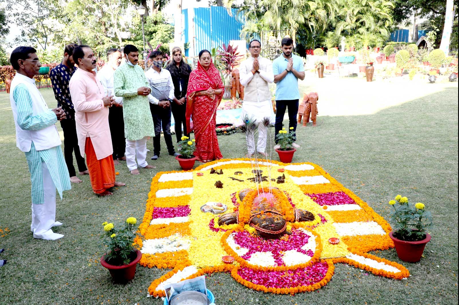 मुख्यमंत्री ने सपरिवार निवास पर की गोवर्धन पूजा