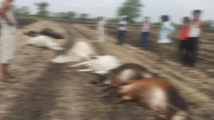 घटना के दौरान खेतों से गुजरी 7 गाय और 1 भैंस करंट की चपेट में आ गई। यह घटना बिजली कर्मचारियों की लापरवाही से हुई है। पीड़ित किसानों को मुआवजा राशि दी जाए। इसमें संजय पांडेय की दो दुधारू गाय, पुष्पेंद्र दुबे की भैंस और अमर सिंह लोधी, प्रवीण सिंह लोधी, हुकुम जाटव, विजय जाटव, हल्ले रावत की एक एक गाय की करंट लगने का शिकार हो गई।