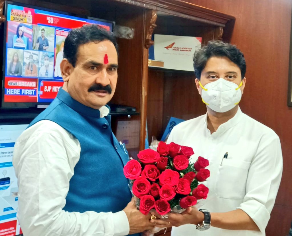 गृह मंत्री डॉ. मिश्रा ने केन्द्रीय नागरिक उड्डयन मंत्री सिंधिया से की मुलाकात