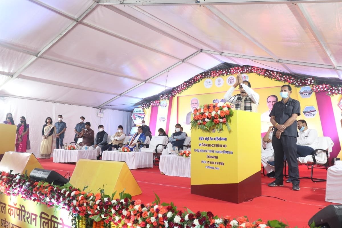 मुख्यमंत्री ने इंदौर में मेट्रो रेल परियोजना के 16 स्टेशन, 11 किमी वायाडक्ट निर्माण का किया भूमि-पूजन और शिलान्यास