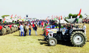इंदौरी नेताओं ने देपालपुर में ताकत दिखाई, खुद ट्रैक्टर चलाकर सभास्थल पहुंचे