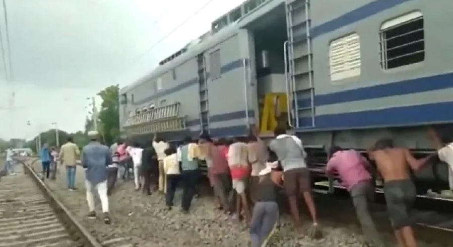 दरअसल एक रेल निरीक्षण ट्रेन (train) को मजदूरों ने धक्का लगा कर मेन लाइन से हटाया। ये वीडियो पश्चिम-मध्य रेलवे जोन के भोपाल मंडल के इटारसी-हरदा के बीच टिमरनी स्टेशन (Timarni Station) के पास का है। यहां ट्रैक पर टॉवर वैगन का इंजन खराब हो गया और फिर उसे हटाने के लिए 40 से भी ज्यादा मजदूरों को एक साथ मिलकर उसे धक्का लगाना पड़ा। ट्रेन को धक्का मारते वक्त किसी ने वीडियो भी बनाया जो अब सोशल मीडिया पर तेजी से वायरल हो रहा है।