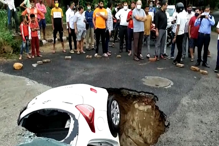 • Delhi: कार सहित सड़क में समा गया ड्राइवर, फिर भी बच गई जान
