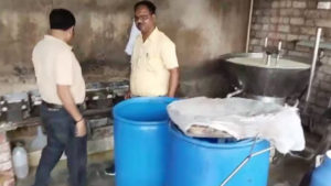 श्योपुर. मध्यप्रदेश (MP) के श्योपुर (Sheopur) में मिलावटी दुग्ध उत्पाद (adulterated milk products) के काले कारोबार के खिलाफ फूड सेफ्टी विभाग (food safety department) ने बड़ी कार्रवाई की है. कार्रवाई शहर से सटे क्षेत्र संचालित एक दुग्ध फैक्ट्री पर की गई जहां मिलावटी दूध, पनीर और घी बनाने का काम होते पाया गया. फैक्ट्री से लिक्विड डिटर्जेंट (liquid detergent) , पोटाश (potash) और हाइड्रोजन परॉक्साइड जैसे उत्पाद भी बड़ी मात्रा में बरामद हुए हैं, जो मिलावटी दूध आदि बनाने में उपयोग में लाए जाते हैं.