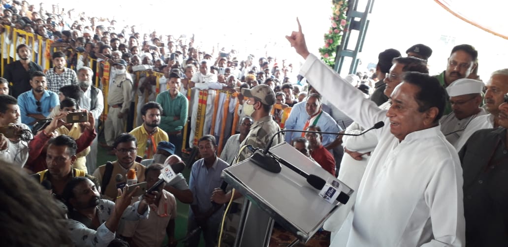 कमलनाथ ने कहा कि मप्र में आज किसान परेशान है, उसे खाद नहीं मिल रही, वह न्याय मांग रहा है और हमारे शिवराज जी ढोलकी बजा रहे हैं। मुझे आज दुख होता है कि शिवराज जी को किसानों का दर्द दिखाई नहीं देता, उनकी आंख-कान सब बंद हैं और सिर्फ़ मुंह चलता है। आज भी वो झूठी घोषणाएं करने में लगे हैं। पिछले 15 वर्ष में उन्होंने 22 हज़ार झूठी घोषणाएं कर दी। शिवराज जी की घोषणाओं व झूठ की तो यह स्थिति है कि जहां नदी नहीं होता, वहां भी वह पुल की घोषणा कर देते हैं। लेकिन शिवराज जी यह ध्यान रखना कि अब बहुत झूठ हो गया, बहुत झूठी घोषणाएं कर लीं, अब जनता हिसाब चुकता करने के लिए तैयार हैं।