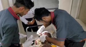 वायरल वीडियो में देखा जा सकता है कि स्ट्रेचर पर लेटे एक घायल मरीज की मरहम-पट्टी सहित उसे टांके लगाने का काम मेडिकल कालेज अस्पताल के सफाईकर्मी कर रहे हैं। मरीज गंभीर रूप से घायल दिख रहा है और चोट उसके मुंह पर, आंख के ठीक पास में नजर आ रही है। जरा-सी लापरवाही से मरीज की आंख को भी नुकसान हो सकता था। जानकारी के अनुसार, पूरा मामला शुक्रवार शाम का है। जब मेडिकल कॉलेज अस्पताल के इमरजेंसी वार्ड में मौजूद सफाईकर्मी ही मरीज की ड्रेसिंग कर रहे थे। हालांकि, यह पूरा मामला सामने आने के बाद इतनी बड़ी लापरवाही को लेकर जब मेडिकल अस्पताल के जिम्मेदारों से इस मामले में जानकारी लेना चाह ही गई तो कोई भी जिम्मेदार इस पर जवाब देने को तैयार नहीं है।