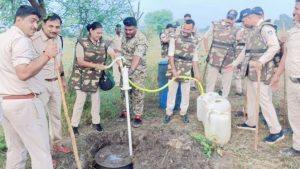 अवैध शराब बनाने वालों ने यहां सात फीट गहरे गड्ढों में टंकियां गाड़ रखी हैं। इसके ऊपर हैंडपंप लगा दिए हैं। इन्हीं से शराब निकालते हैं। इससे निकाली गई शराब पॉलीबैग में भरकर बेचते हैं। पुलिस ने सोमवार को अवैध शराब के दो ठिकानों पर छापा मारा। इस दौरान हजारों लीटर कच्ची शराब जब्त भी की गई। हालांकि, आरोपी पहले ही भाग निकले। पुलिस ने आठ आरोपियों की पहचान कर ली है। दो थानों में आठ केस दर्ज किए गए हैं।