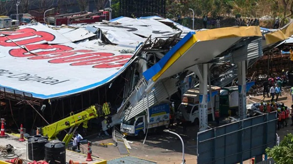 स्थानीय निकाय के अन्य अधिकारी ने बताया कि होर्डिंग मुंबई को ठाणे से जोड़ने वाले ‘ईस्टर्न एक्सप्रेस हाईवे’ पर लगे हैं। उन्होंने बताया कि ये सभी एक-दूसरे से 100 से 150 मीटर की दूरी पर लगे हैं। मानकों के अनुसार, बीएमसी अधिकतम 40 गुणा 40 वर्ग फुट आकार वाले होर्डिंग लगाने की अनुमति देती है, लेकिन जो अवैध होर्डिंग गिरा, उसका आकार 120 गुणा 120 वर्ग फुट था।