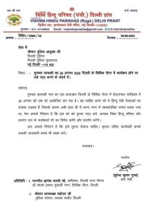 विश्व हिन्दू परिषद ने लिखा पत्र
