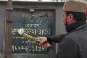 रामपुर । अखिल भारतीय मुस्लिम महासंघ के प्रमुख (AIMM Chief) फरहत अली खान (Farhat Ali Khan) को बापू मॉल में (In Bapu Mall) समाजवादी पार्टी के नेता (SP Leader) मोहम्मद आजम खान (Mohammad Azam Khan) और उत्तर प्रदेश के पूर्व मुख्यमंत्री (Former CM of UP) अखिलेश यादव (Akhilesh Yadav) के नाम वाली तख्ती को तोड़ने पर (For Breaking the Name Plate) गिरफ्तार कर लिया गया (Arrested) । फरहत अली खान ने रविवार को तख्ती को तोड़ने के लिए हथौड़े का इस्तेमाल किया।