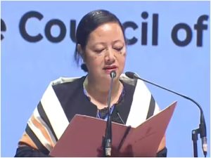 नई दिल्ली: नगालैंड विधानसभा के लिए निर्वाचित पहली महिला विधायक सलहौतुओनुओ क्रूस ने मंगलवार (7 मार्च) को मंत्री पद की शपथ ली. नगालैंड में एनडीपीपी के नेफ्यू रियो की अगुवाई में बनी सर्वदलीय सरकार ने प्रधानमंत्री नरेंद्र मोदी की उपस्थिति में शिलांग में शपथ ग्रहण की. केंद्रीय गृह मंत्री अमित शाह, बीजेपी अध्यक्ष जेपी नड्डा, असम के मुख्यमंत्री हिमंत बिस्वा सरमा भी समारोह में मौजूद रहे.