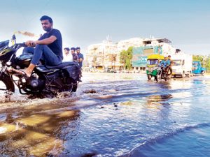 इन्दौर। आज सुबह एबी रोड (AB Road) पर अमर विलास होटल (Amar Vilas Hotel) के समीप नर्मदा (Narmada) की मेन सप्लाय लाइन फूटने के कारण सडक़ पर तालाब की स्थिति बन गई। आए दिन यहां लाइनें फूटती हैं, जिसके कारण लोगों के साथ-साथ वाहन चालक भी खासे परेशान हो रहे हैं। आज भी सूचना के बाद काफी देर तक नर्मदा प्रोजेक्ट की टीम मौके पर नहीं पहुंची।