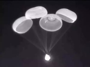 रात में धरती के वायुमंडल (Atmosphere) में प्रवेश करते समय घर्षण के कारण स्पेसएक्स का क्रू ड्रैगन कैप्सूल थर्मल इमेज में लाल दिखाई दे रहा था। लाइव थर्मल वीडियो इमेजिंग में यह कैप्सूल किसी उल्कापिंड के जैसे दिखाई दे रहा था। समुद्र में उतरने के ठीक पहले कैप्सूल के पैराशूट खुल गए, जिसके कारण इसकी रफ्तार घटकर 24 किलोमीटर प्रति घंटे तक पहुंच गई।