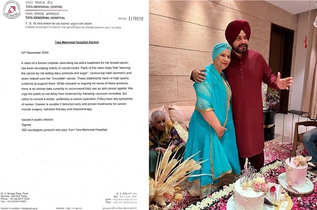 एक प्रेस कॉन्फ्रेंस में नवजोत सिंह सिद्धू ने कहा था कि शुगर, डेयरी प्रोडक्ट से परहेज और हल्दी व नीम का सेवन उनकी पत्नी का कैंसर ठीक करने में बहुत कारगर साबित हुए हैं. इस पर टाटा मेमोरियल अस्पताल के डायरेक्टर डॉ. सीएस प्रमेश का कहना है कि इन दावों के पीछे कोई ठोस वैज्ञानिक प्रमाण नहीं हैं. उन्होंने टाटा मेमोरियल अस्पताल के 262 वर्तमान और पूर्व कैंसर विशेषज्ञों के हस्ताक्षर किया हुआ स्टेटमेंट भी जारी किया है. इस स्टेटमेंट में कहा गया है कि हल्दी और नीम से कैंसर ठीक होने को लेकर कोई क्लीनिकल डेटा उपलब्ध नहीं हैं.