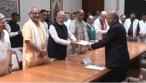 नई दिल्ली । उपराष्ट्रपति पद के लिए एनडीए उम्मीदवार सी.पी. राधाकृष्णन (NDA candidate for the post of Vice President C.P. Radhakrishnan) ने नामांकन दाखिल किया (Filed Nomination) । इस मौके पर संसद भवन में प्रधानमंत्री नरेंद्र मोदी,अमित शाह ,राजनाथ सिंह सहित एनडीए के बड़े नेता भी मौजूद रहे।
