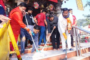 उज्जैन। आज सुबह हरसिद्धि मंदिर क्षेत्र में नेतागिरी दिखाई दी और जनप्रतिनिधि झाडू लगाते दिखे। इस दौरान आम लोग भी उपस्थित थे तथा नगर निगम के अधिकारी भी मौजूद थे। लोगों में स्वच्छता के प्रति जागरूकता लाने के लिए जनप्रतिनिधियों ने सफाई की।