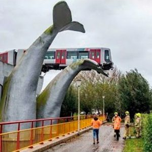 दरअसल नीदरलैंड्स के रॉटरडैम शहर में एक मेट्रो काफी आउट ऑफ कंट्रोल हो गई थी और आखिरी स्टेशन को पार करते हुए ये ट्रेन हवा में पहुंच गई थी जिससे काफी नुकसान भी हो सकता था। डी एकेर्स नाम के स्टेशन को तोड़ते हुए ये ट्रेन हवा में पहुंच चुकी थी लेकिन सौभाग्य से वहां एक व्हेल की पूंछ की मूर्तिकला बनी हुई थी, जिसने काफी अद्भुत अंदाज में इस मेट्रो के सबसे पहले डिब्बे को थाम लिया और ये ट्रेन वही अटक कर रह गई।