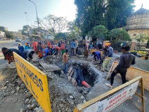 बड़ा गणपति से एमजी रोड की सडक़ अफसरों के गले की हड्डी बन गई है, क्योंकि कई जगह सडक़ के घटिया काम को लेकर स्मार्ट सिटी के अफसरों को फटकार मिली थी तो वहीं गोराकुंड क्षेत्र में आधी-अधूरी सडक़ का सीमेंटीकरण अफसरों ने करा दिया था, जिसको लेकर बहुत किरकिरी हुई थी। अभी भी उक्त सडक़ पर काफी काम बाकी है और धर्मस्थलों की बाधाएं हटाई जाना हैं, लेकिन सडक़ निर्माण कार्य तीन बार समयावधि निकलने के बाद भी पूरा नहीं हो पा रहा है। कृष्णपुरा क्षेत्र का हिस्सा जैसे-तैसे पूरा किया गया था तो अभी भी पूरी सडक़ पर कई जगह छोटे कार्य चल रहे हैं।